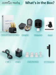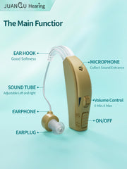 • Digital Processing Noise Reduction Hearing Aid: JUANGU hearing aids are processed by DSP noise reduction chip to reduce and eliminate background noise of people's voice frequency, while transmitting better and clearer sound
