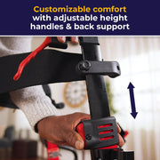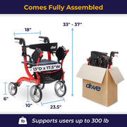 Drive Medical Nitro Dual Function Transport Wheelchair and Rollator Rolling Walker Combo with Hand Activated Brakes and Back Support, Red